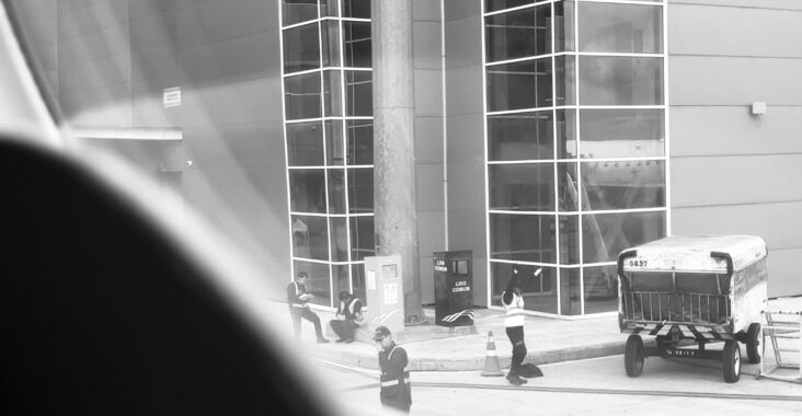 Em algum lugar de algum lugar, corre perdendo o voo tentando não perder, ainda não sabe que o tempo, em passos lentos ou não, é tão somente o tempo, sendo sido de ser. Enquanto corre cruza com a personagem de um livro por escrever, mas não há tempo… Sua vida passa ali na vida que vai passando entre passageiros e copilotos que vão passados, entre malas e mochilas e gatos e cachorros que também vão passando e vai passando o tempo e o dia passando sem que ela perceba. Para a personagem o dia nem sempre tem a noite e às vezes a noite pode ser clara de dia. E os dias tão cheios do mantra não tenho tempo, em looping nas luzes e nos corredores de uma extensa área de embarque, onde muitos distraídos e atrasados e ansiosos e adiantados passam. Talvez, terá ela reparado nele, contra o atraso da saída da aeronave, carregando passos largos a expressão usada. Indiferente mas sutilmente demonstrando o tornozelo ainda dolorido, torcido na tigela escorregada das mãos pelo chão da cozinha esparramada no odor da manteiga dando entrada no convite à dança. Esquecidos foram os patins para gelo. No contra efeito de repente, ela notando notada, o trecho do primeiro parágrafo que se esqueceu enquanto escrevia a frase secundária. Só reparando mesmo, sem nada a perceber… Sobre o conceito do dia feito da soma das horas de sol com as horas sem sol, as horas anunciadas na frase decorada na pontuação da última chamada, noite… Não havendo um eu a escrever a descrição do impreciso, a consciência movente resvala e quase conclui a personagem, ilusionando a autonomia de suas mãos ao escrever (como ousa o narrador - observador de longe - defini-la, concluindo conhecer?) Na escrita da não escrita as nuances da porosidade sopram a escrita que se apaga num instante, a personagem existe para lá de quem dela passa. A personagem existe e a história não escrita sendo escrita ali mesmo onde não se escreve.... Enquanto ele ainda passa. Atrasado, apressado, a cabeça calculando o tempo. Calculando o tempo de uma vida feira das antigas antiguidades de saguão de uma única escolhida realidade. O segundo mantra o mundo é assim. E a personagem que não existe, ri. E ele continua sem ver, ele continua o fluxo do corredor. E os atrasados, os atrapalhados, os risonhos, os que olham para o lado, os que não sorriem como se não sorrir fosse uma competição para vencer. E ao silêncio alguém dança… sozinho no corredor, dança a pulsação do corpo sem contramão nem mão. Em algum lugar de algum lugar… A personagem que não existe, continua a rir… RJ - 21.10.25